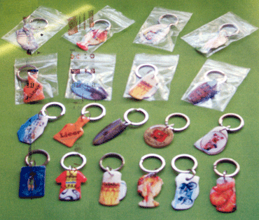 Adhesivos para llaveros metálicos de diversas formas con posibilidad de personalización con efecto lupa.