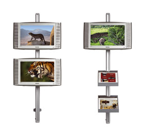 Soporte de pared para varias pantallas a la vez. De elegante diseño y excelente acabado, captan la atención del público en espacios públicos y comerciales.