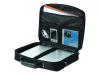 La cartera permite transportar sus materiales informáticos fácilmente gracias a los confortables asideros, a la bandolera y a la tira de fijación para bolsa trolley.
